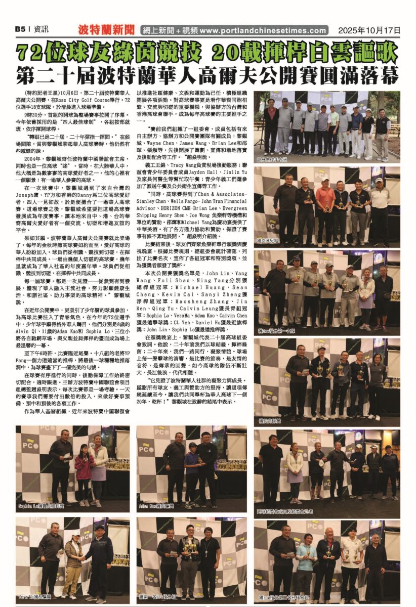 第二十屆波特蘭華人高爾夫公開賽圓滿落幕 72位球友綠茵競技 20載揮桿白雲謳歌
